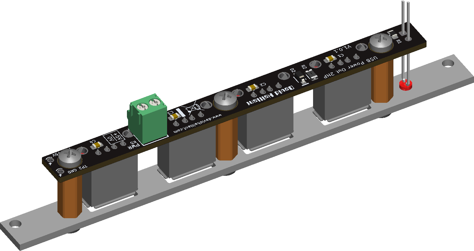 Here is the recommended order for assembling USB Power Output 2HP module. Please read through the entire procedure before beginning to solder. Feel free to adapt the procedure to your preference.